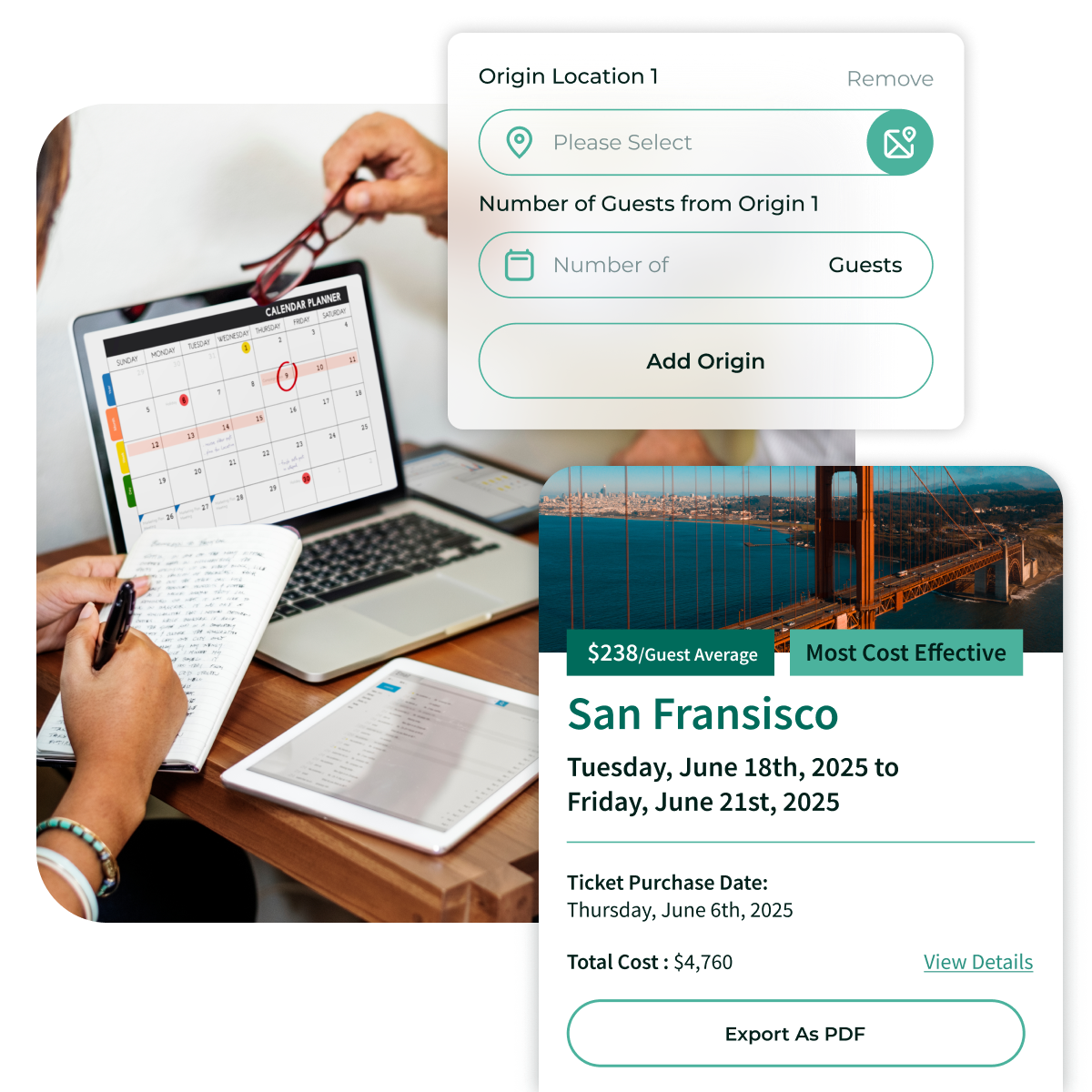Bringing people together from different locations? We’ll find the best-predicted airfares, calculate total costs, and compare cities to help you choose the most cost-effective meeting destination.